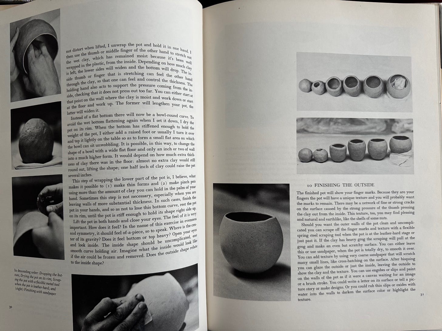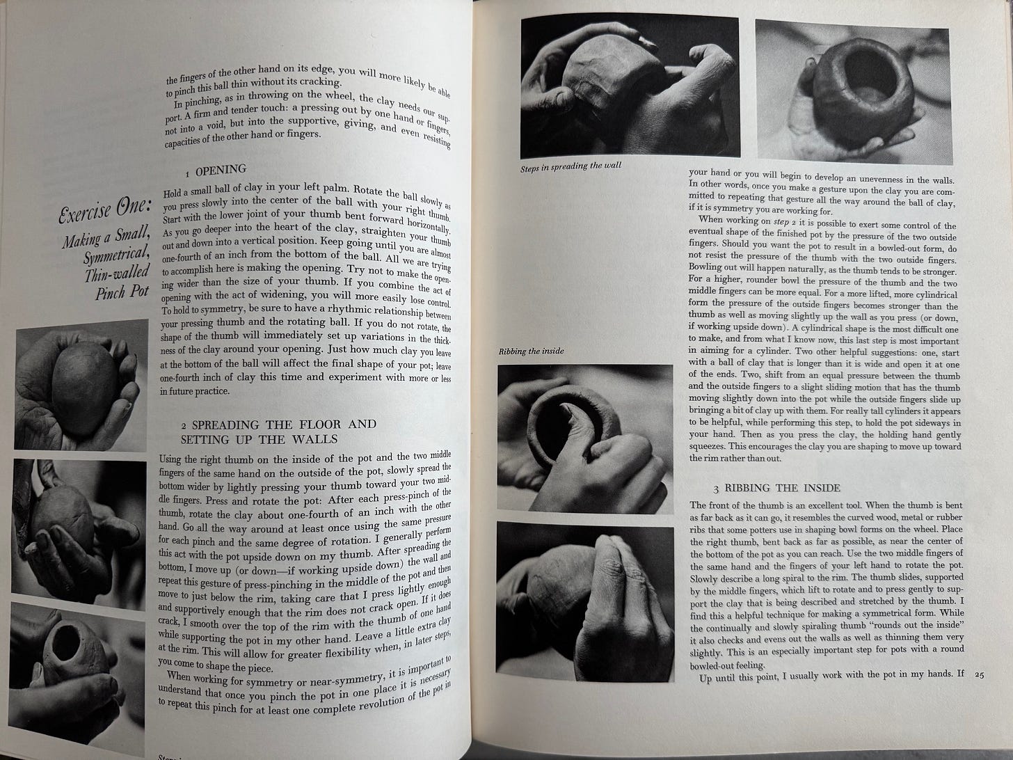 I came across the book “Finding one’s way with clay - pinched pottery and the colour of clay” by Paulus Berensohm online somewhere, tracked a secondhand copy down and added to cart immediately. The book focuses on pinch pots - but really delving deep and extending the meaning of them and all the ways you can pinch. Written in 1972 by dancer turned potter Paulus Berensohn, it presesnts pottery not just as a craft, but as a meditative and spiritual practice - this is evident throughout the book through both his words and pictures. It is inspiring as both a how to book, and a reflection of the craft and practice of pottery.
